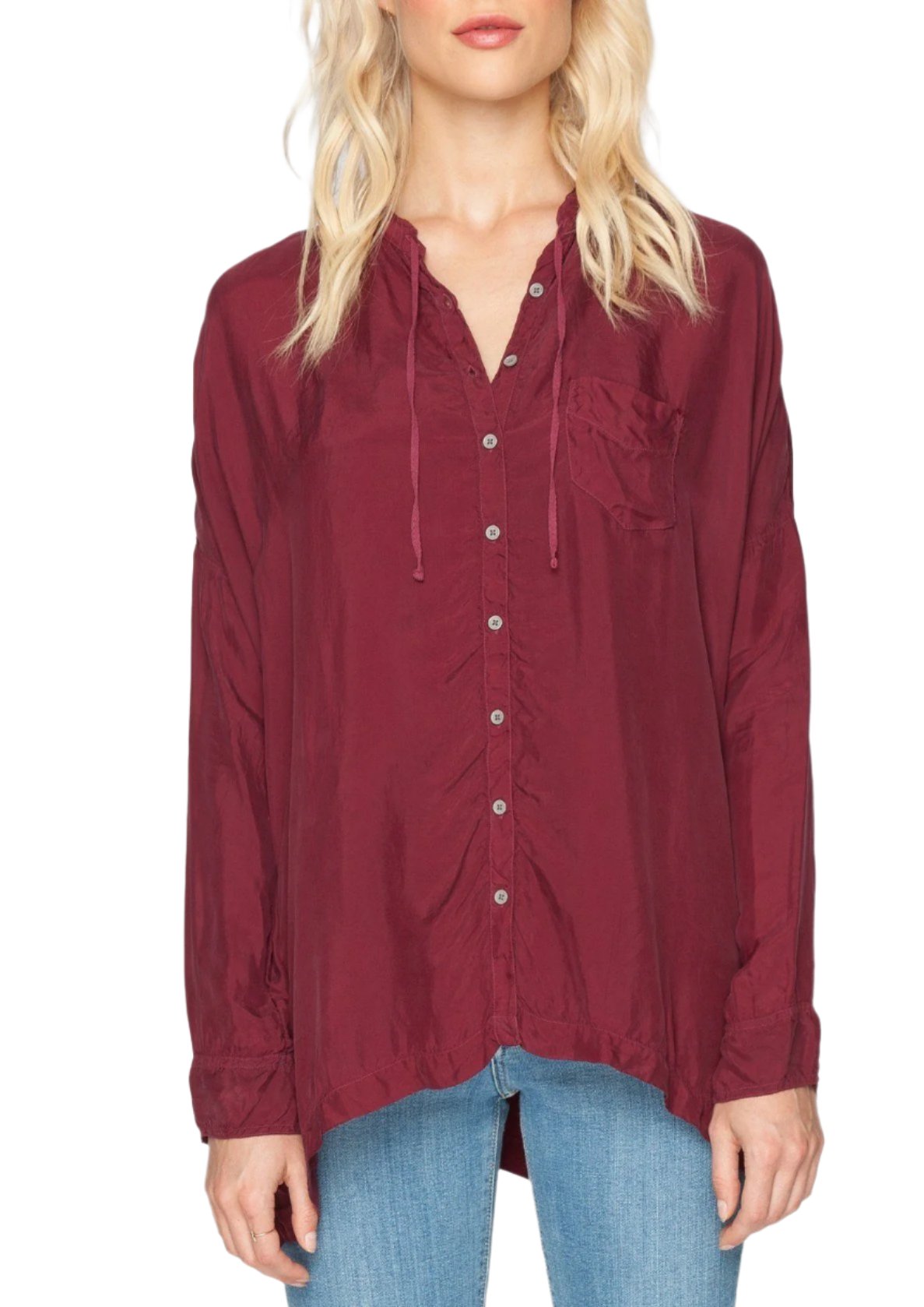 The Pete & Greta PAIGE BUTTON-DOWN TOP is a closet staple! This button-down blouse is cut for a relaxed fit in our signature flowy Cupra rayon in a bold berry red hue. Pair the PAIGE BUTTON-DOWN TOP with your favorite jeans, or wear it unbuttoned over a tank dress - you'll find countless ways to style this versatile red blouse!