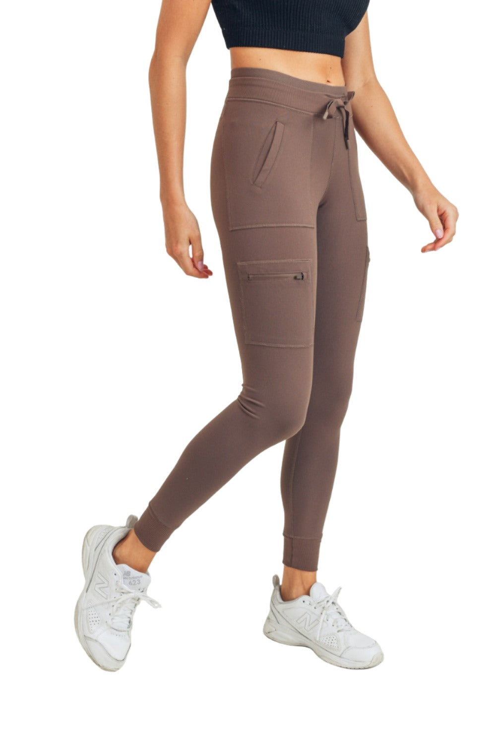 Experience the best of both worlds with this hybrid pair of cargo pants and leggings. Featuring multiple zippered pockets, stylish drawstring double waist band, and a clean silhouette, wear these leggings out or in.