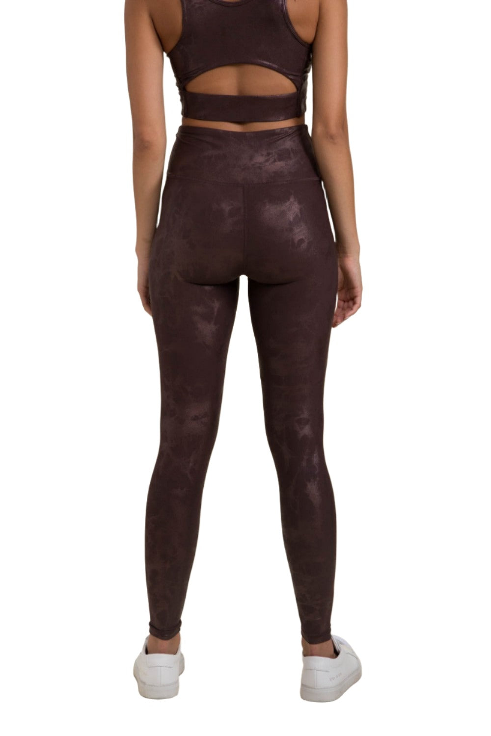 Mono B Metallic Foil Printed High-Waist Leggings APH2873 - Black/Copper Foil - rear view
