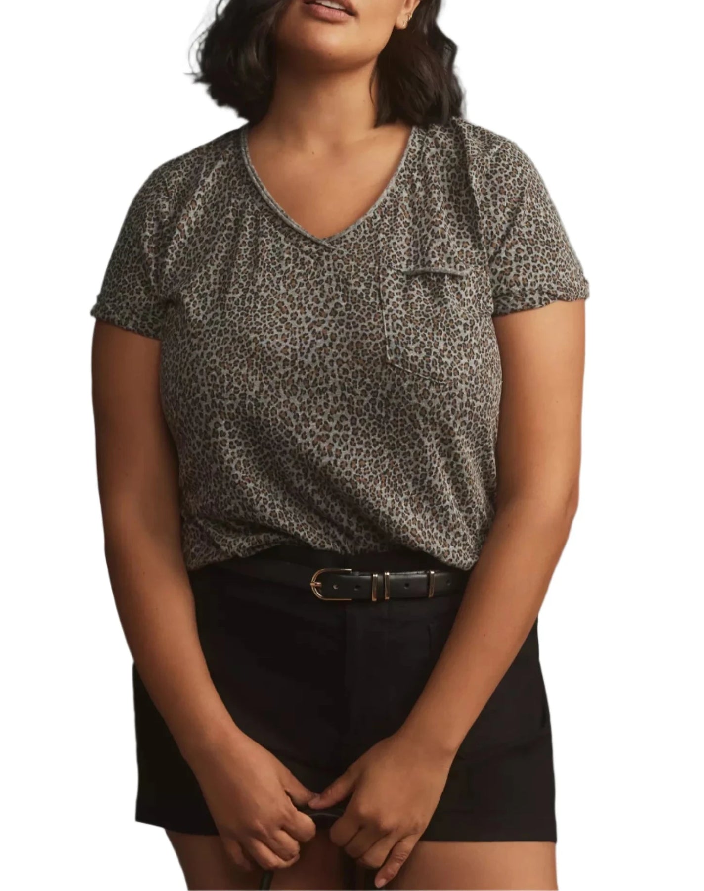 TLA V-Neck Tee Shirt with Pocket and Plus