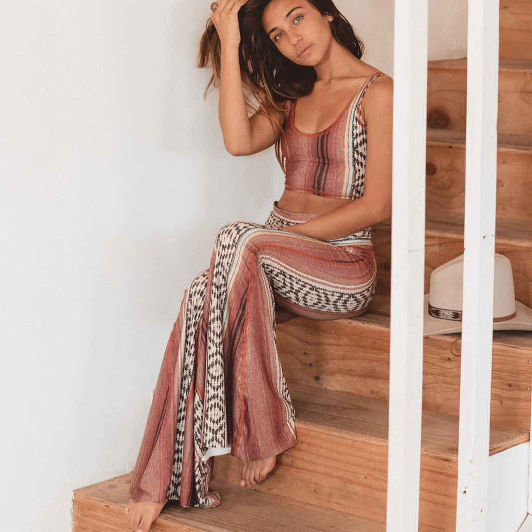 Turn up the heat in the Teeki Women's Long Bell Bottoms in the bold and earthy Border Towns Red print — now available by waitlist only. Made from ultra-soft brushed jersey, these full-length flares offer a high-rise, leg-lengthening fit that flatters every body type. Their vintage-inspired flow and eye-catching color make them a standout for festivals, nights out, or everyday styling. Join the waitlist and claim your spot — this iconic pair won’t stay quiet for long.
