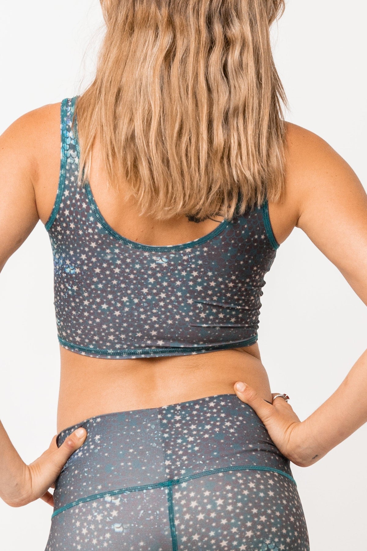 The single layer of lightweight fabric offers a gentle compression for low impact activities and daily use.  Move freely in yoga class, by the pool, in the ocean, or layering without the discomfort of tight elastic bands, thick materials and underwires. Lover tanks can be worn both ways, front to back.