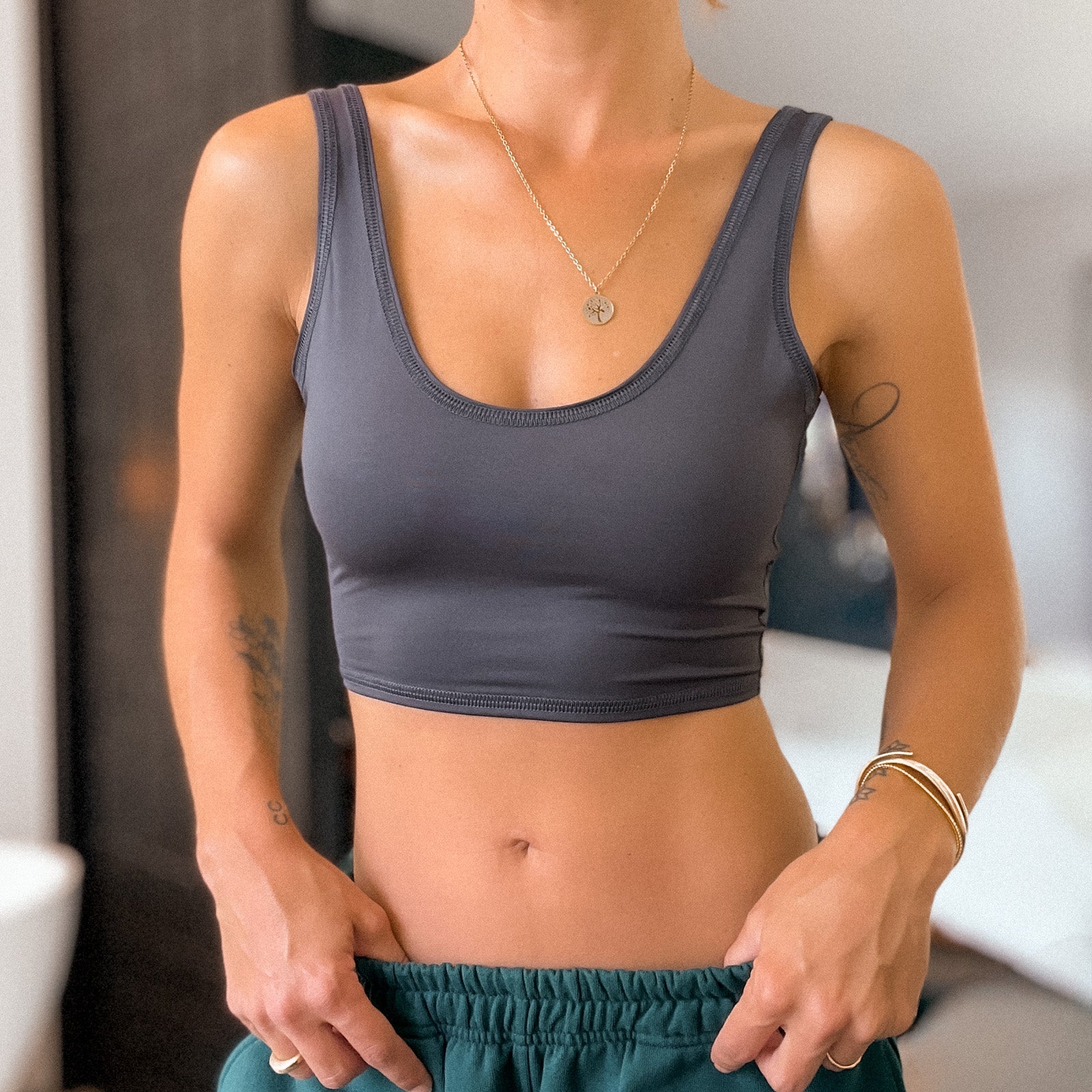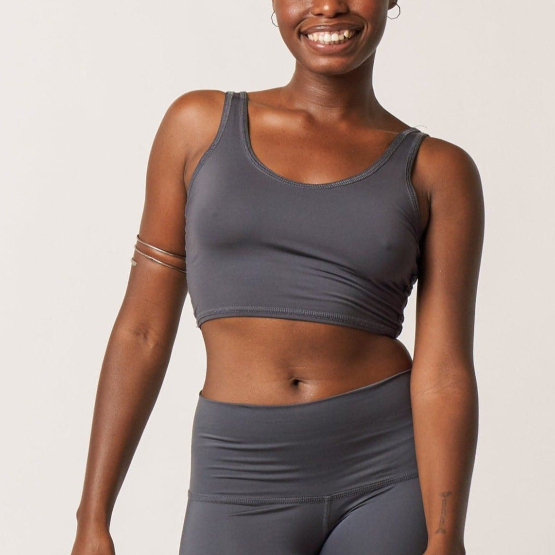 Stay cool, confident, and supported in the Teeki Solid Carbon Grey Lover Tank — a lightweight, breathable tank top for women made for yoga, low-impact workouts, swimming, and layering. Once you go Lover you will never go back. The Teeki Lover Tanks are designed as a low scoop neck bra replacement that offers gentle support for healthy, happy breasts. It's a must-have staple in your closet.
