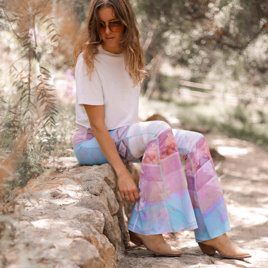 Unlock your inner mystic with the Teeki Women's Long Bell Bottoms in the enchanting Tarot Magic print. Crafted from ultra-soft brushed jersey, these high-waisted, full-length flares offer a leg-lengthening fit that flatters every body type. Flowing with vintage flair and a touch of cosmic charm, they’re perfect for festivals, late-night adventures, or just aligning your vibe for the day. Pair with boots or wedges and let your intuition lead — these bell bottoms were written in the stars.