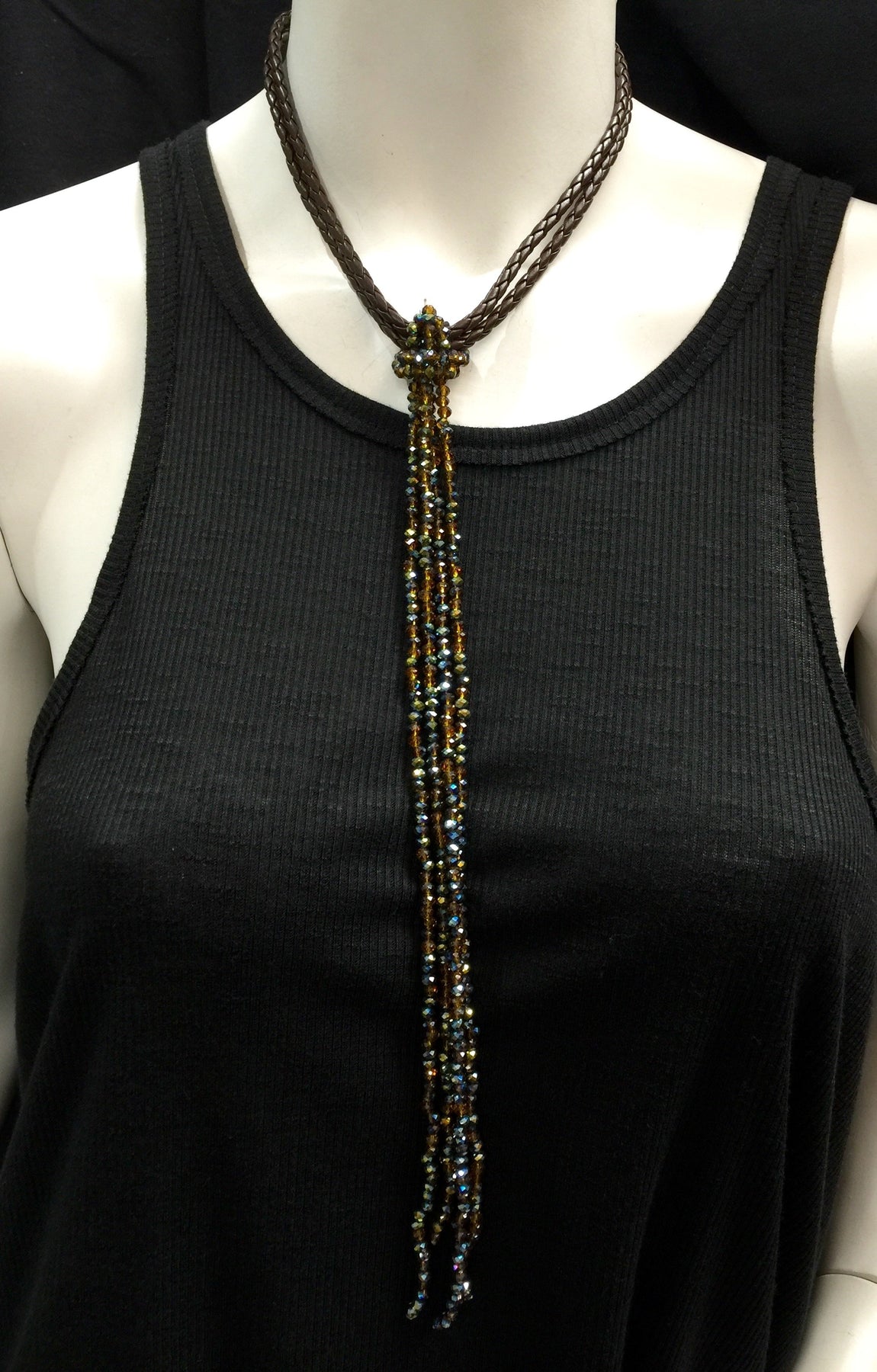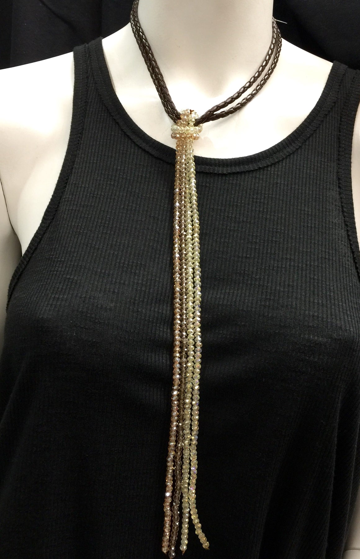 fashion crystals and leather braided necklace
