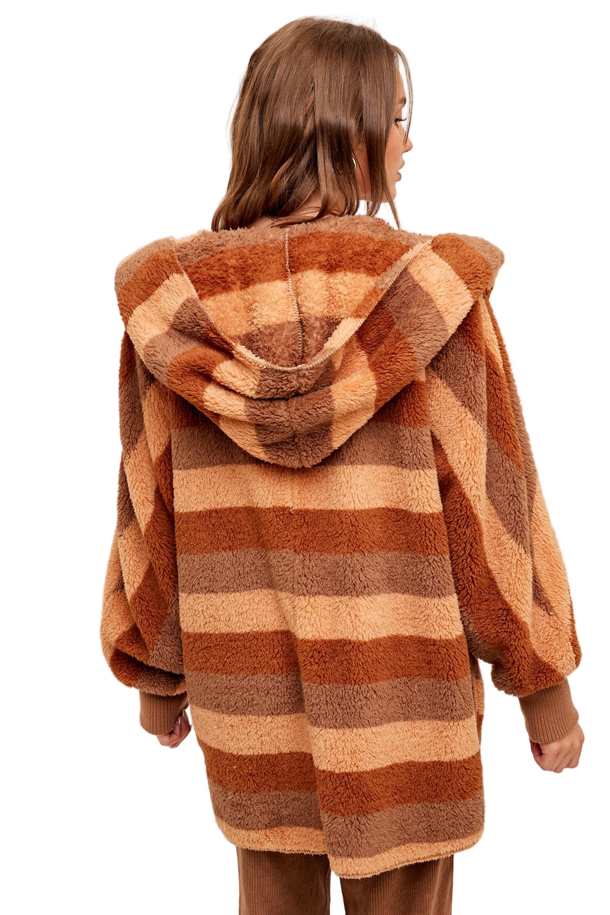 This hem and thread stripe design fur open coat is ideal whether you want to look stylish while doing errands or feel comfortable lounging around the house. This is exactly what you need to stay warm this winter! Wrap it around you and get cozy! It is as soft as a baby blanket, perfect for everyday use!
