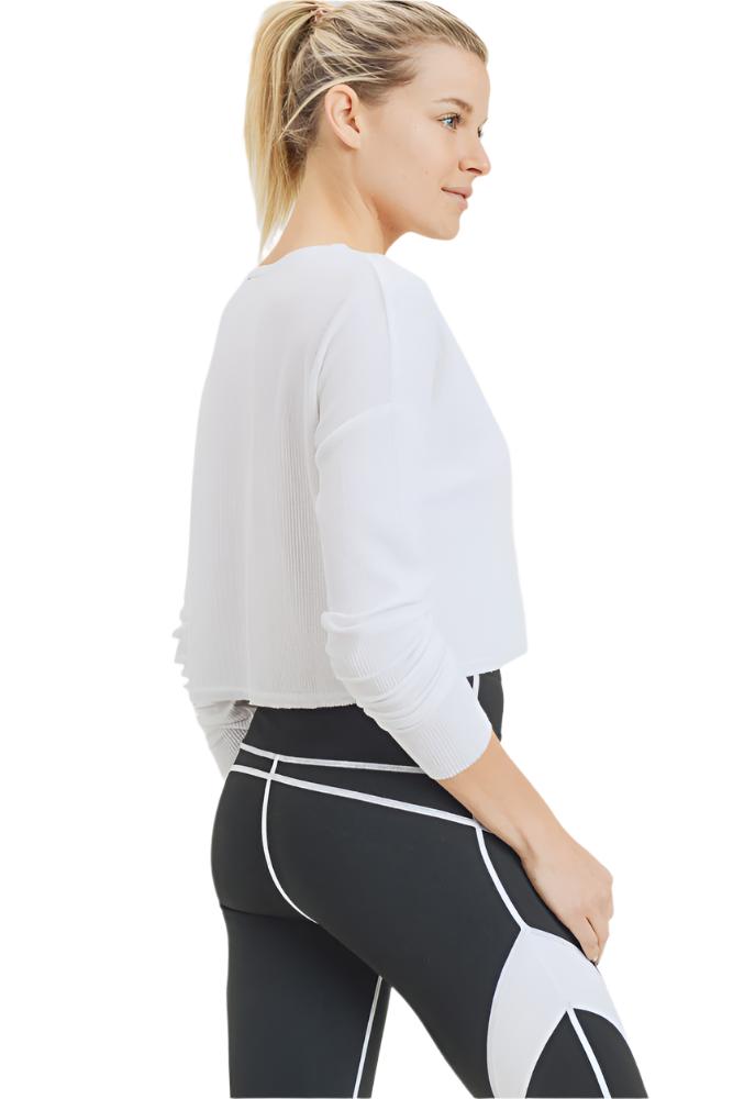 With is cropped length, notched collar, and long sleeves, this waffle-knit pullover is perfect to layer over your Mono B activewear, or pair it with jeans for a street-chic look.