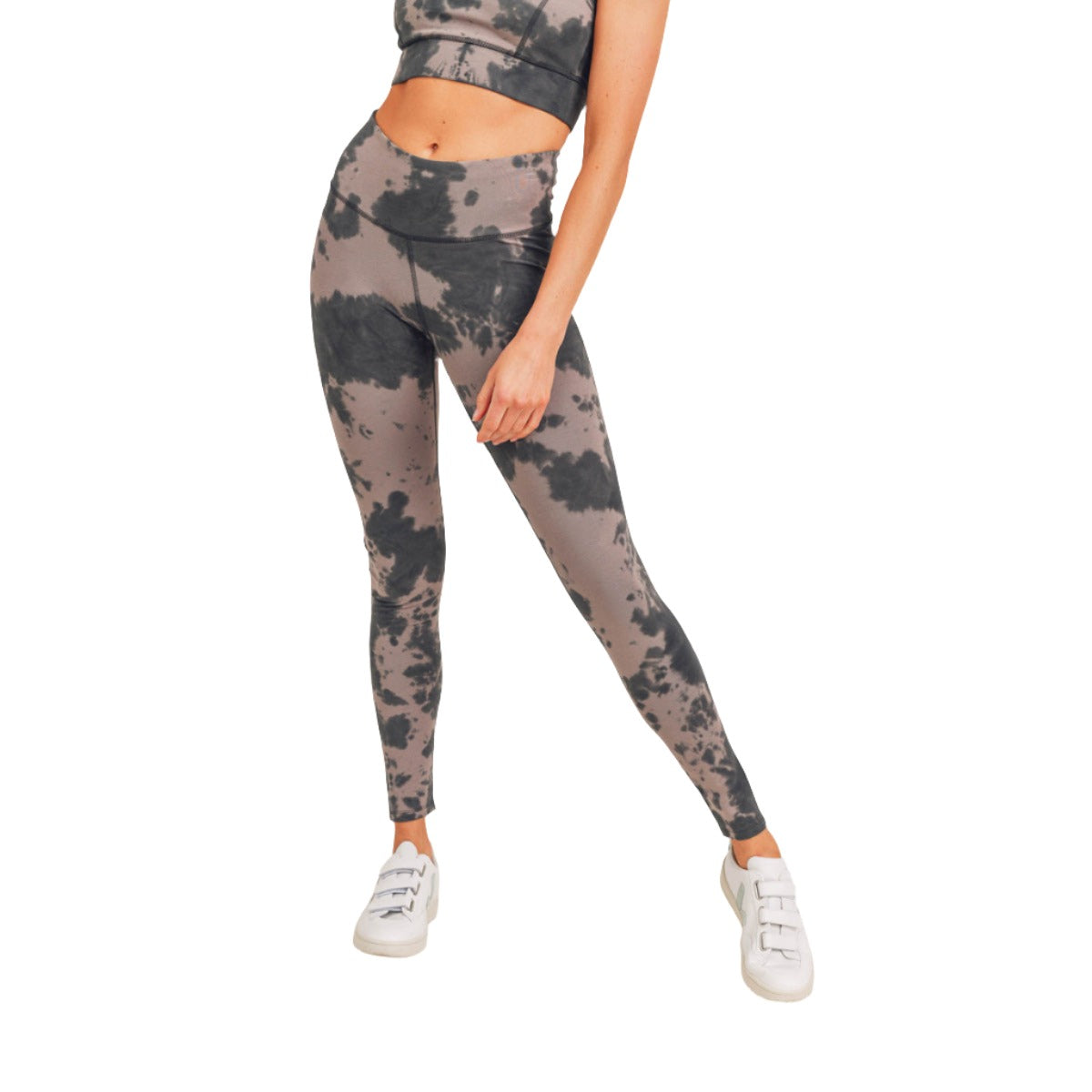 Mono B Tie Dye High Waist Legging APH2789 - Mushroom/Black - Front Full View