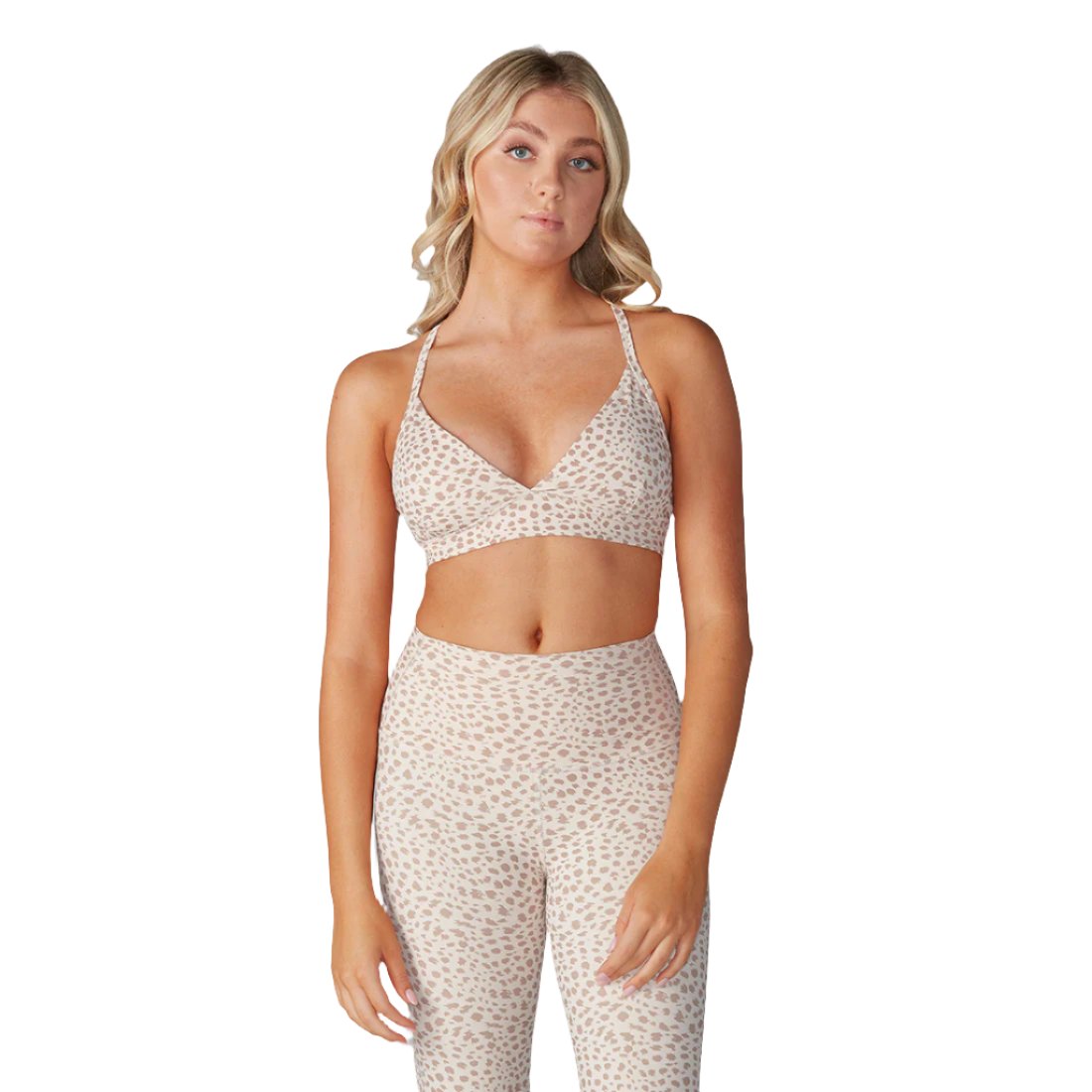 FIT: Low v neckline. Cut-out back with adjustable straps. Designed for low impact movement: studio, lifestyle. Sweat-wicking & quick-dry. Removeable pads with mesh lining.