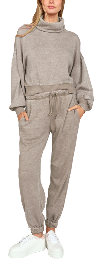 Vintage Havana offers a soft, sage cowlneck sweater with balloon sleeves!